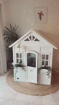 Introducing the Lucy & Me wooden playhouse. Perfect for little imaginations. For indoor use. Self assembly, playhouse comes pre-treated. The open design makes it easy to watch the children play.